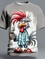 Men's Animal Rooster Funny T Shirt Short Sleeve T shirt 3D Print Crew Neck Shirt Exaggerated Designer Party Holiday Dark Gray Gray Summer Spring Clothing Apparel S M L XL XXL XXXL
