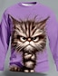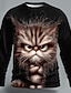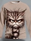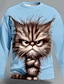 Mens Novelty Messy Hair Cat Graphic Long Sleeve Shirt Blue Round Neck Pullover Funny Animal Print Streetwear Clothing Apparel S M L XL XXL XXXL