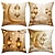 Ramadan Eid Throw Pillow Cover, Gold Crescent Moon & Lantern Print, Middle Eastern Festival Decor, Ethnic Style Sofa Cushion for Living Room and Prayer Room
