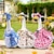 Blue Floral Porch Goose Outfit with Bonnet, Daisy Print Goose Clothes for 23-25" Concrete Garden Goose Statue, Spring Summer Outdoor Yard Decor Accessories, Outfit Only, Goose Not Included