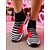 Women's Black Striped Knit Slip-On Sneakers with Red Heart Accent – Trendy Sports Shoes for AValentine's Day, Casual Outings and Street Style