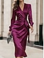 Women's Midi Dress Satin Dress Party Dress Elegant Fashion Modern Outdoor Vacation Party Regular Fit Plain Long Sleeve V Neck Purple Summer Spring Fall Autumn