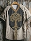 Men's T Shirt Tee Short Sleeve Shirt Tee Top Short Sleeve V Neck Summer Viking Tree Of Life Yggdrasil Vintage Designer Ethnic Style Print Vacation Street Going out Apricot Khaki Top Tee for Men