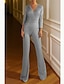 Jumpsuits Glittering Dress Wedding Guest Prom Floor Length 3/4 Length Sleeve V Neck Sequined with Sequin