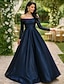 A-Line Ankle Length Party Dress Cocktail Dress Wedding Guest Dress Mother of the Bride Dress Long Sleeve Off Shoulder Elegant Formal Satin with Pearls