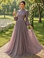Dress Mother of the Bride Dress Elegant Party Crew Neck Floor Length Tulle Half Sleeve with Sequin