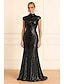 Mermaid Trumpet Sweep Brush Train Evening Gown Elegant Casual / Daytime Wedding Semi-formal / Cocktail Cap Sleeve High Neck Wedding Formal Sequined with Glitter