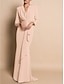 A-Line Sheath Column Floor Length Beaded Eembroidered Wedding Guest Dress Formal Dresses Mother of the Bride Dress 3/4 Length Sleeve V Neck Shirt Collar Elegant Vintage Luxurious Formal Satin with