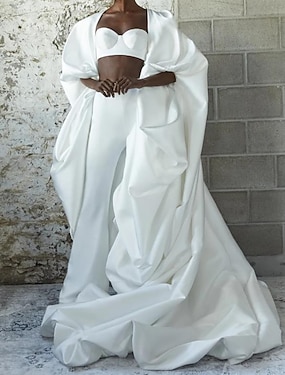 Women's Wrap Bridal's Wraps Cape Luxury Half Sleeve Satin Fall Wedding Wraps With Pure Color For Wedding All Seasons dress to impress