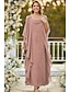 Sheath Column Ankle Length Party Dress Cocktail Dress Wedding Guest Dress Mother of the Bride Dress Half Sleeve Cowl Neck Elegant Simple Wedding Guest Chiffon with Tier Embroidery Cascading Ruffles