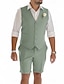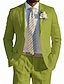 Men's Wedding Beach Wedding Linen Suits V Neck pea green White Solid Colored Tailored Fit 2 Piece