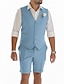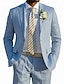 Men's Beach Wedding Linen Suits Notch Lapel White Sky Blue Fashion Lightweight Solid Colored Standard Fit 2 Piece Single Breasted One-button