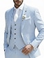 Men's Wedding Beach Wedding Linen Suits Notch White Sky Blue Solid Colored Slim Fit 3 Piece Single Breasted Two-buttons