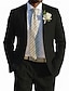 Men's Wedding Spring Wedding Suits Shawl Lapel Shawl Collar Black Champagne Jacquard Floral Tailored Fit 2 Piece Single Breasted One-button