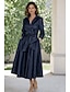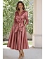 A-Line Tea Length Party Dress Cocktail Dress Wedding Guest Dress Mother of the Bride Dress Long Sleeve Shirt Collar Elegant Vintage Formal Velvet with Ruching Solid Color