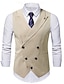 Men's Waistcoat Vest Wedding Vest Best Man Closure Collar Vintage Classic Solid Colored Vest Black Beige Tailored Fit Double Breasted Five-buttons