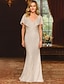 Sheath / Column Floor Length Evening Gown Ball Gown with Overskirt Formal Dress Elegant Color Block High Split Short Sleeve Off Shoulder Wedding Formal Satin Taffeta with Slit Embroidery