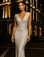 Mermaid / Trumpet Sheath / Column Floor Length Sequin Dress Prom Dress Party Dress Sleeveless V Neck Elegant Vintage Party Polyester Mother of the Bride Dress with Sequin
