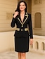 Two Piece Sheath / Column Tea Length Skirt Set Blazer Dress Formal Dress Long Sleeve Shirt Collar Elegant Party Luxurious Polyester Mother of the Bride Dress with Buttons Color Block