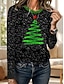 Natal Mulheres Camiseta Gráfico Animal Árvore de Natal Moda Casual Manga Longa Gola Redonda Tops regulares Diário Final de semana Imprimir Azul Dourado Verde Verão Primavera Outono Inverno