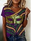 Carnival Women's T Shirt Graphic Abstract Vintage Casual Short Sleeve V Neck Regular Tops Daily Print White Purple Summer