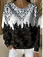 Christmas Women's T shirt Crew Neck Long Sleeve Tunic Casual Print Regular Tops Daily Black Spring Fall