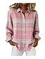 Women's Shirt Blouse Dressy Tops Plaid Plain Striped Elegant Vintage Tropical Long Sleeve Shirt Collar Regular Tops Daily Work Holiday Ruched Patchwork Buttons Blue Blush Pink Yellow Pink Light Brown