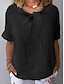 Women's Blouse Solid Color Stylish Casual Short Sleeve Peter Pan Collar Regular Tops Daily Ruched Blue Black White Yellow Red Summer Spring