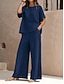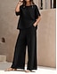 Women's Two Piece Sets Pants Sets Bolero Top Short Sleeve Crew Neck Plain Fashion Streetwear Casual Daily Outdoor Blue Black Yellow Summer Regular Fit