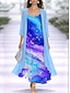 Women's Dress Set A Line Dress Elegant Vacation Floral Graphic Layered Print Midi Dress 3/4 Length Sleeve V Neck Daily Vacation Blue Pink Summer Spring Regular Fit