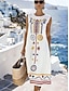 Women's Midi Dress Shift Dress Sundress A Line Dress Vacation Casual Boho Beach Going out Regular Fit Graphic Geometric Sleeveless Crewneck White Summer Spring