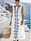 Women's Midi Dress Shift Dress Sundress A Line Dress Vacation Casual Boho Beach Going out Loose Fit Graphic Geometric Sleeveless Crewneck White Summer Spring