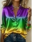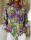 Mardi Gras Women's Shirt Graphic Geometric Abstract Vintage Stylish Modern Long Sleeve Shirt Collar Long Tops Daily Holiday White Yellow Light Purple Purple Green Summer Spring