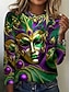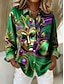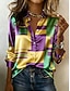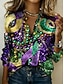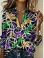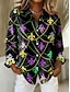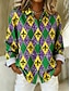 Mardi Gras Women's Shirt Graphic Geometric Vintage Stylish Modern Long Sleeve Shirt Collar Regular Tops Daily Holiday Yellow Light Purple Purple Gold Green Summer Spring
