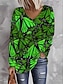 Women's T Shirt Graphic Butterfly Vintage Stylish Casual Long Sleeve V Neck Regular Tops Daily Print Blue Purple Orange Green Spring Fall