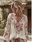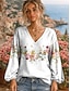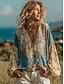 Women's Shirt Floral Graphic Elegant Bohemia Vintage Long Sleeve V Neck Regular Tops Daily Holiday Patchwork Buttons Print Blue White Pink Light Blue Summer Spring