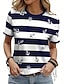 Women's T Shirt Graphic Striped Anchor Vintage Stylish Classic Short Sleeve Crew Neck Regular Tops Daily Weekend Print Blue Summer Spring