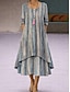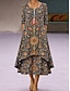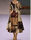 Women's Midi Dress Shift Dress Casual Holiday Regular Fit Graphic Geometric Long Sleeve Crew Neck White Navy Blue Brown Beige Spring Winter