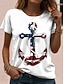 Women's T Shirt Graphic Anchor Vintage Stylish Classic Short Sleeve Crew Neck Regular Tops Daily Weekend Print Blue Black White Summer Spring