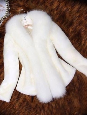 Women's Winter Coat Faux Fur Coat Warm Comfortable Fur Trim Active Vintage Fashion Cute Solid Color Formal Wedding Vacation Home Short V Neck Regular Fit Long Sleeve Outerwear Black White Spring Fall