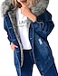 Women's Winter Coat Hoodie Jacket Denim Jacket Warm Comfortable Pocket Buttons Casual Plain Daily Wear Going out Weekend Long Hooded Regular Fit Long Sleeve Outerwear Black Sky Blue Dark Blue Fall