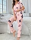 Women's Pajamas Loungewear Pajama Set Casual Butterfly Elastic Waist Pant Home Daily Bed Short Sleeve Crew Neck Pink Summer Spring Loose Fit