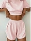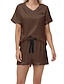 Women's Loungewear Pajama Set Fashion Casual Soft Pure Color Patchwork Elastic Waist Shorts Home Vacation Short Sleeve V Neck Lake blue Black Champagne Pink Brown Summer Spring Fall Regular Fit