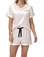 Women's Pajama Set Satin Notch Collar Short Sleeve Elastic Waist Home Loungewear Burgundy Silk-like Sleepwear All Seasons Comfort Fit