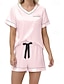 Women's Pajamas Loungewear Pajama Set Simple Casual Comfort Print Letter Tie Knot Pullover Pant Home Daily Short Sleeve Crew Neck Black Pink Blue Rose Red Summer Spring Fall Loose Fit