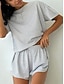 Women's Pajama Set Casual Comfort Stripe Elastic Waist Shorts Daily Home Short Sleeve Crew Neck Black Pink Green Gray Summer Spring Loose Fit
