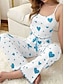 Women's Pajama Set Casual Comfort Heart Elastic Waist Pant Daily Home Sleeveless Straps Blue Black Pink Red Summer Spring Regular Fit