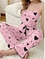 Women's Pajamas Pajama Top and Pant Sets Heart Casual Comfort Soft Home Daily Bed Breathable Straps Sleeveless Strap Top Shorts Elastic Waist Summer Spring Home Outfits