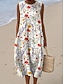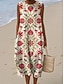 Women's Midi Dress Sundress Shift Dress A Line Dress Vacation Casual Boho Beach Party Going out Loose Fit Floral Graphic Sleeveless Crewneck Beige Summer Spring