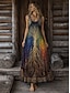 Women's Midi Dress Boho Casual Dress Swing Dress Summer Dress Dress Vintage Beach Regular Fit Graphic Color Gradient Sleeveless Crew Neck Blue Green Summer Spring